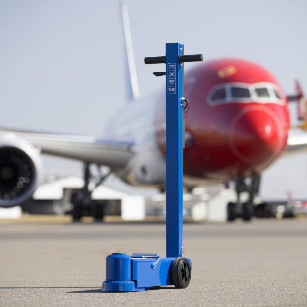 The jack can be operated by compressed air, nitrogen from the aircraft wheels or a mobile nitrogen service cart.