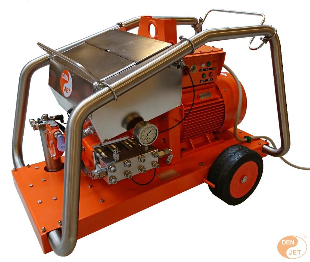 The CE100 series of machines are electrically driven pumps with a pressure from 300 to 2000 Bar and from 21 to 135 L/min in flow. The frames are made from hot dip galvanized pressed sheet metal parts and stainless steel perimeter frame rails. Four rubber feet for secure positioning. One hook lifting eye. Manufacturer’s website…