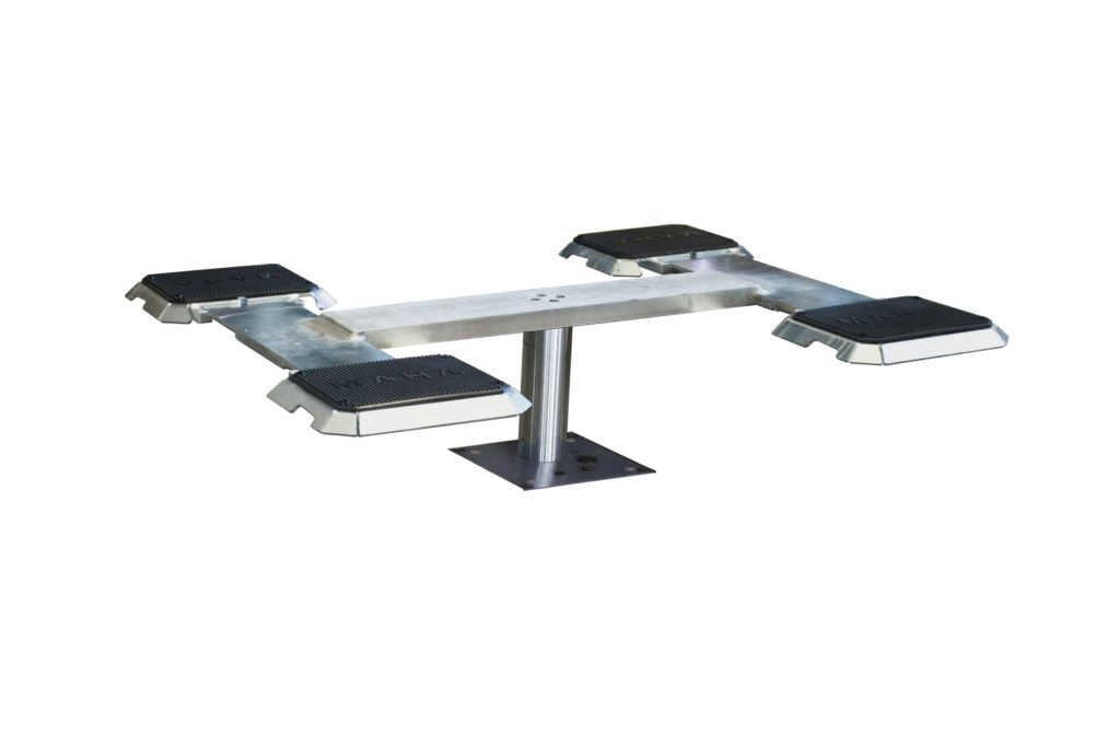 SQUARE | One Post Inground Lift with H mount and 3000 kg lifting capacity Description: H flat support bridge: Easier, tyre-preserving drive-on thanks to all-round bevelled pull-out elements combined with low construction height with rubber mounting plate (construction height no more than approx. 60 mm) Large mounting areas thanks to interchangeable mounting plate system cover…