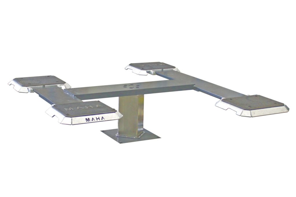BARLIFT | One Post Inground Lift with H support and 3000 kg load capacity Description: H-flat lifting head supports: Easier, tyre-preserving drive-on thanks to all-round bevelled pull-out elements combined with low construction height with rubber mounting plate (construction height no more than approx. 60 mm) Large mounting area thanks to interchangeable mounting plate system which…
