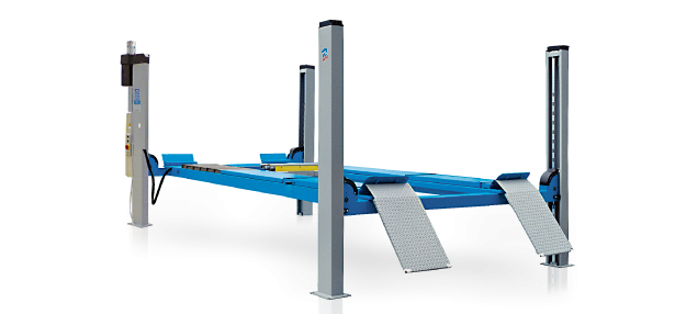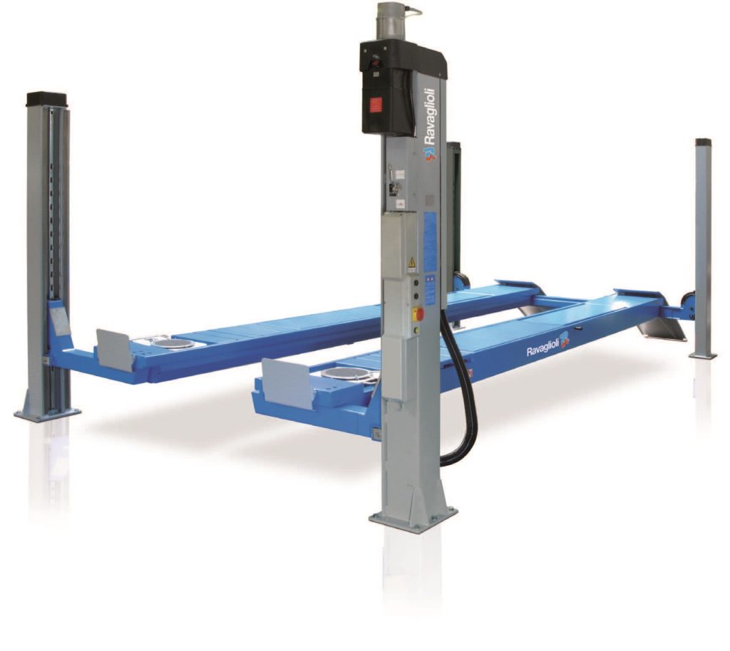 RAV 4406L / 4000 kg ELECTRO-HYDRAULIC 4-POST LIFTS Extra-long platforms for total wheel alignment with front turning plates locations and rear slip plates. Manufacturer’s website: Ravaglioli Product PDF : Ravaglioli-Rav4406