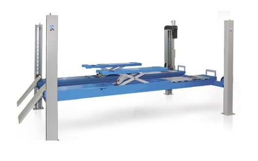 Electro-hydraulic 4 post lift with front recesses and rear slipping plates for wheel alignment and built in lifting table Overload safety valve • Descent control valve • “Buzzer” on last portion of descent • Pipe burst safety valve • 24 V, low tension dead man controls • Automatic release of safety locking devices Optional :…