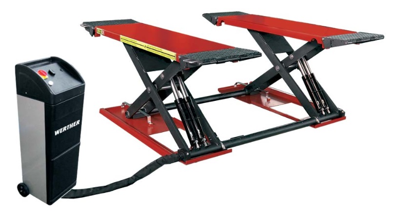 LOW PROFILE SCISSORS LIFTS Mechanical locking device with automatic engagement and pneumatic release, ensuring maximum safety when lift is in standing position Hydraulic levelling system by means of a patented synchronisation device assures constantly levelled lifting platforms regardless of weight distribution All pivot points made with self lubricating bushings for long life No cross rails…