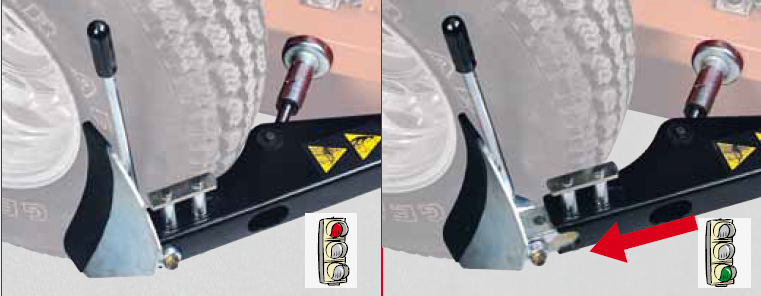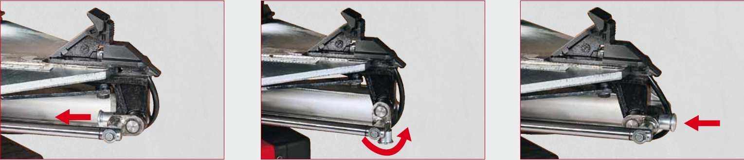 The standard bead loosener on the machine has one feature: it can extend the pallet on the fixed arm. This is very useful and ideal when working with large wheels and all-terrain wheels. Moreover, the bead breaker vane is always well positioned in relation to the wheel, thus avoiding possible damage to the tyre and/or rim. This function is faster and safer. The two-position telescopic rim support (CORGHI patent) is extremely useful for beading all types of wheels up to a maximum width of 14″.