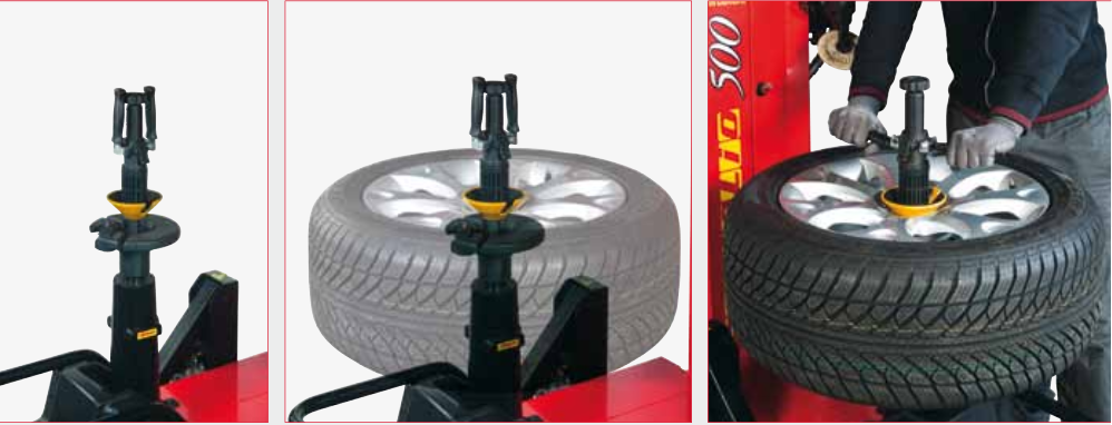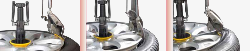 The self-centring plate allows quick locking as well as relief of both flanks without having to turn the wheel. The constant working height (except for overturned rims) has been studied to offer perfect ergonomics to the operator’s movements, for all types of wheels.