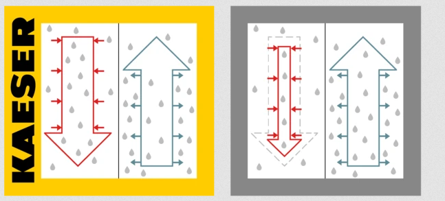 The advantages of full-flow regeneration become obvious, especially with increased coolant temperatures. Kaeser rotary dryers achieve outstanding drying results even without additional electric heating of the regeneration air.
