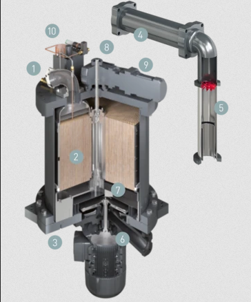 The optional i.HOC rotation dryer for integration in the rotary screw compressor can reliably and efficiently achieve pressure dew points as low as -30 °C. The hot compressed air from the second compression stage is used to regenerate the desiccant.