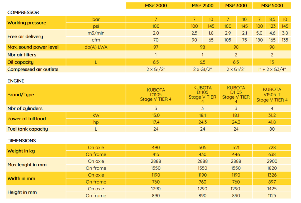 Portable screw air compressors – 2,0 to 5,0 m3/min