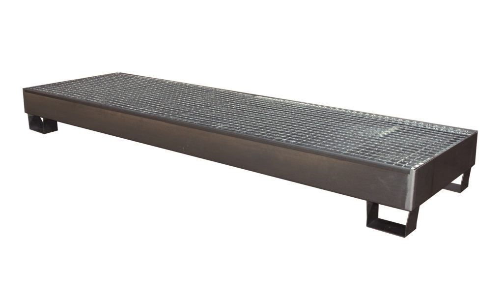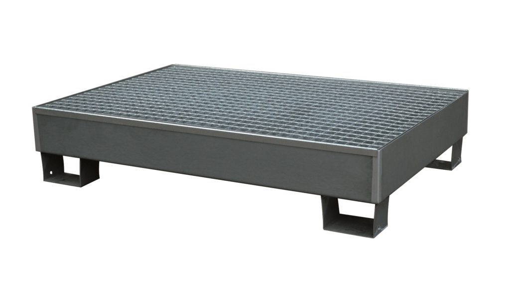 Retention bin for 2 drums or small containers of up to 200 litres. With grating and feet, galvanised.