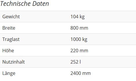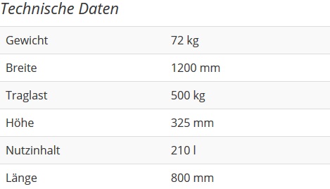 Max. load capacity 1000 kg, weight approx. 104 kg