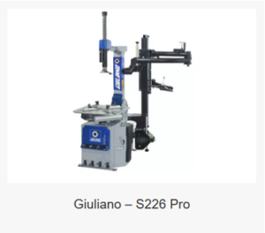 Démonte-pneus automatique Giuliano s226 avec bras vertical basculant pour roues avec jante de 10″ à 24″ (diamètre maxi. roue 1100 mm./43″, largeur maxi. roue 390mm./15″).