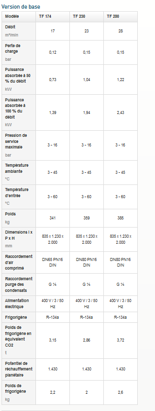 • Sécheur frigorifique pour une température ambiante jusqu’à 50 °C