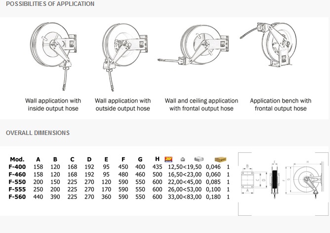 Enrouleur de tuyau fixé POUR AIR-Eau 20 bar Mod. F-400 AVEC TUYAU