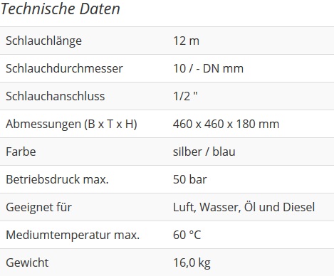 Enrouleur automatique avec 12 m de tuyau DN 10, pour montage mural, au sol ou au plafond.
