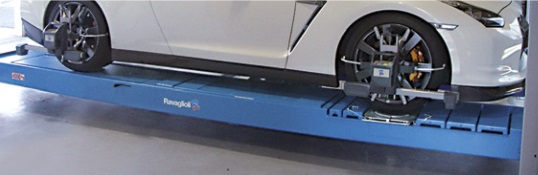 Chemins de roulement pour géométrie totale extra-longs avec logements avant pour plateaux pivotants et plans mobiles arrière.