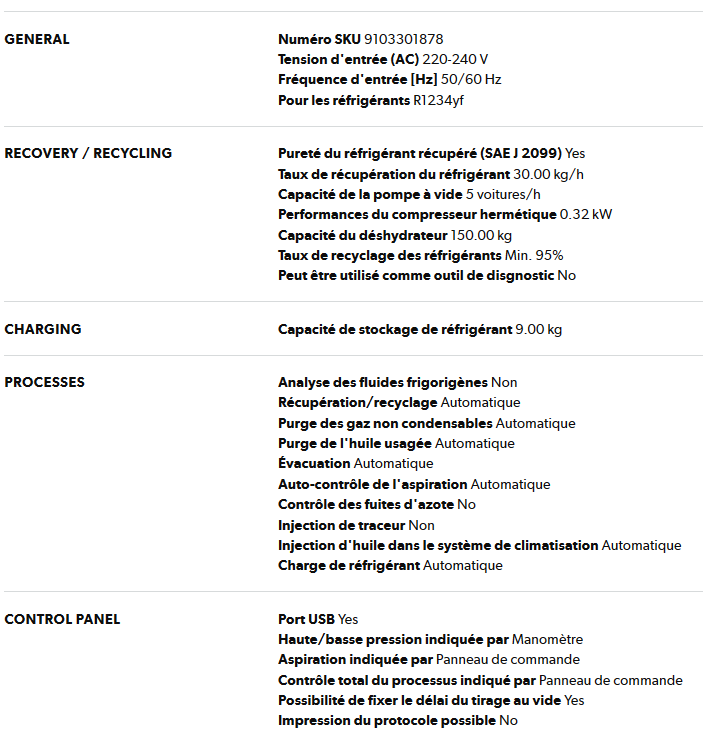 La pureté du fluide frigorigène récupéré respecte la norme SAE J 2099